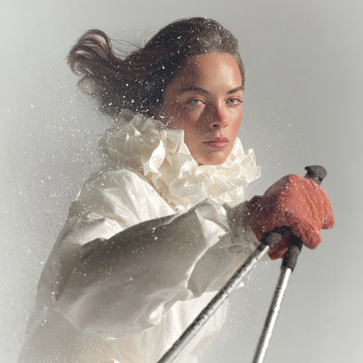 • AI visuals using icy light, reflective surfaces, and minimal compositions