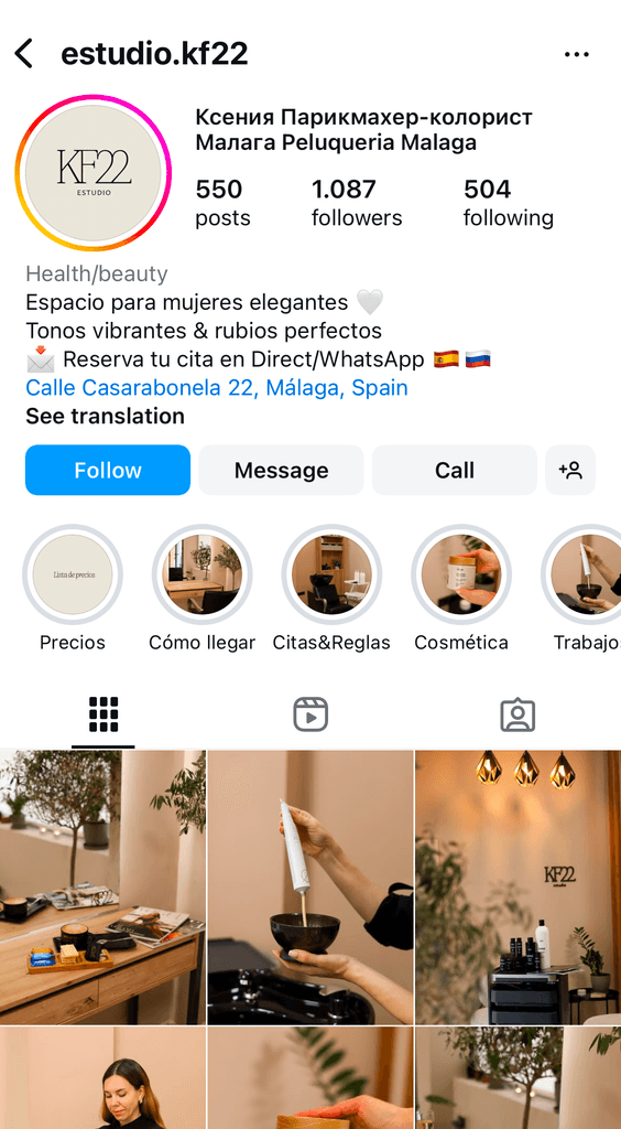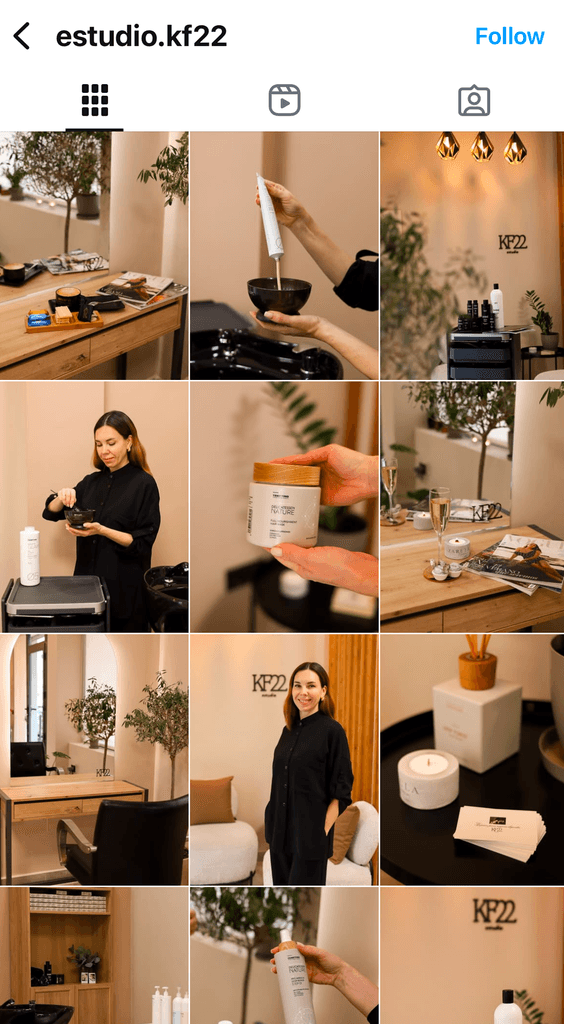 The rebranding of KF22’s social media focused on creating a clear, cohesive, and visually calm presence. The profile was restructured to communicate key information and attract a wider audience, with a Spanish bio added for accessibility. Highlights were organized to answer client questions and streamline navigation. A custom photo preset and detailed shooting guide ensured consistency, reflecting the brand’s warmth, softness, and refined aesthetic. The curated feed now conveys KF22’s identity with clarity and quiet confidence.