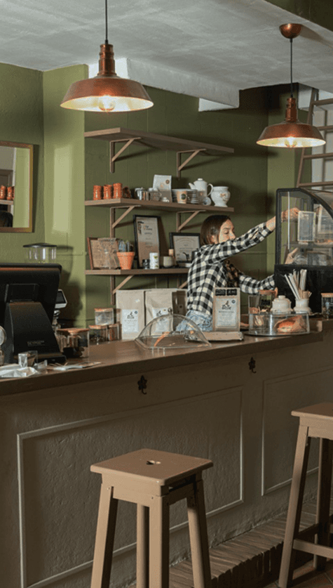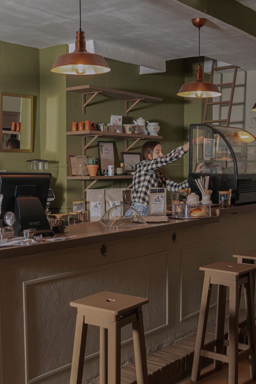 The interior was updated to reflect the new visual identity and create a seamless brand experience. The goal was to strengthen recognition, attract the right audience, and enhance the atmosphere with minimal intervention. Walls were repainted in the signature brand color, bringing warmth and cohesion to the space. A photo corner with curated decor and artwork became a natural point of interaction, inviting guests to engage and share their experience while reinforcing the brand’s visual presence.